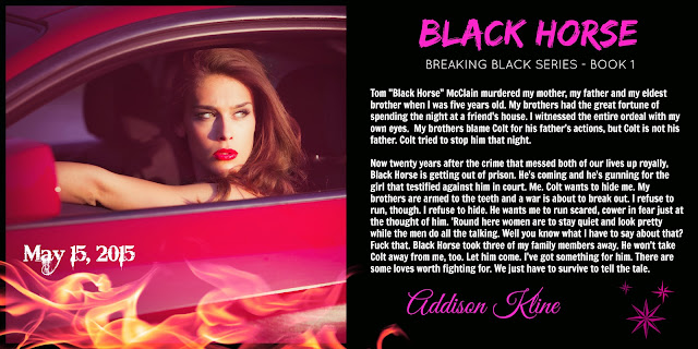 This is the first book in the Breaking Black series. This is a romance, love, suspense, with a touch of mystery. Can be read as a stand alone, but I personally want more. Hurry up Addison! I recommend this book to anyone whom loves an emotional book... tears, laughter, grieving, anger, love and hate... yes a roller coaster, Addison Kline has delivered an amazing book to keep you engrossed and I could not put it down. I really enjoyed the devotion that Colton has towards Averi. The love of a lifetime. I understood their grief and their passion. Not only does this book have a strong heroine but it has a couple of yummy men. I am usually a one book boyfriend girl but dang... there is so many to choose from in this book.